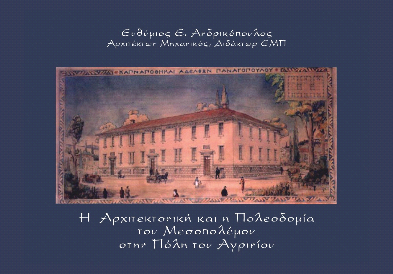 Το βιβλίο του Ευθυμίου Ανδικόπουλου "Η Αρχιτεκτονική και η Πολεοδομία του Μεσοπολέμου στην πόλη του Αγρινίου" παρουσιάστηκε στην νεόδμητη αίθουσα του ΤΕΕ Αιτ/νίας στο Αγρίνιο το Σάββατο 16 Οκτωβρίου 2010 με συνδιοργανωτές το Πνευματικό Κέντρο του Δήμου Αγρινίου "Στέλιος Τσιτσιμελής" και το Περιφερειακό Τμήμα Αιτωλοακαρνανίας του Τεχνικού Επιμελητηρίου Ελλάδας. Για το βιβλίο μίλησαν ο κ. Παλιούρας Αθανάσιος, Επίτιμος Καθηγητής Πανεπιστημίου Ιωαννίνων ο κ. Χρήστος Κατσιμπίνης, Αρχιτέκτων και ο ίδιος ο συγγραφέας.Την εκδήλωση χαιρέτησαν η πρόεδρος του Πνευματικού Κέντρου κ. Κατσαρή Κων/να και ο πρόεδρος της Δ.Ε του Τ.Ε.Ε κ. Ρόκκος Κων/νος. Στο βιβλίο του ο κ. Ανδρικόπουλος παρουσιάζει εμπεριστατωμένα και ανάγλυφα μέσα από τα κτίσματα του Αγρινίου (καπναποθήκες, το πάρκο της πόλης ,τα σχολικά συγκροτήματά του, ιδιωτικές κατοικίες κ.α.) την Αρχιτεκτονική και την πολεοδομία της πόλης του Αγρινίου την εποχή του Μεσοπολέμου. Στη εκδήλωση παραβρέθηκαν ο Αντιδήμαρχος Αγρινίου κ. Ε. Τσούκαλος, ο τ. Βουλευτής κ. Γ. Βαινάς, ο υπ. Περιφερειάρχης Δυτ. Ελλάδας κ. Γ. Παπαναστασίου, ο Βουλευτής και υπ. Δήμαρχος Αγρινίου κ. Δ. Σταμάτης, η Πρόεδρος του Κ.Α.Π.Η Αγρινίου κ. Λ. Κολοβού καθώς και μέλη συλλόγων και φορέων του Αγρινίου.