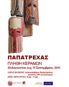 Στα πλαίσια των γιορτών καλοκαιριού 2011 το Εικαστικό Εργαστήρι του Δήμου Αγρινίου παρουσιάζει την έκθεση του Δημήτρη Παπατρέχα με τίτλο «πλήθη κεράμων» που θα πραγματοποιηθεί στον περιβάλλοντα χώρο των αποθηκών Παπαστράτου. Η έκθεση περιλαμβάνει κεραμεικά στα οποία ο καλλιτέχνης χάραξε συνθέσεις στην προσπάθειά του να δημιουργήσει ένα εικαστικό περιβάλλον. Τα εγκαίνια θα γίνουν τη Δευτέρα 29 Αυγούστου 2011 και ώρα 8 μμ στον εξωτερικό χώρο των αποθηκών Παπαστράτου. Διάρκεια έκθεσης ως τις 11 Σεπτεμβρίου. Ώρες επισκέψεων: βραδινές από 8-11 μμ. (είσοδος από οδό Δεληγιώργη). Βιογραφικό: Ο Δημήτρης Παπατρέχας γεννήθηκε το 1955 στον Μαχαιρά Αιτωλοακαρνανίας. Εργάσθηκε ως βοηθός στο εργαστήριο του Γιώργου Βακιρτζή, από το 1978 μέχρι το 1982, με παράλληλη ενασχόληση στις γραφικές τέχνες και σπουδαστής στην ΑΣΚΤ Θεσσαλονίκης το 1984. Αυτή η έκθεση είναι η 4η προσωπική του με προηγούμενες το 2003 στην «Νεώριον Τέχνης», το 1992 στην «Εναλλάξ» και το 1987 στον «Αντήνορα». Συμμετείχε σε 6 ομαδικές στην Αθήνα, Αγρίνιο και Νέα Υόρκη. Δίδαξε για 2 χρόνια σχέδιο & χρώμα στο Εικαστικό Εργαστήρι του Δήμου Αγρινίου. |