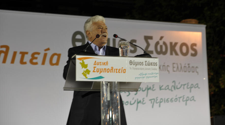 Bέβαιος για τη νίκη του συνδυασμού του «Δυτική Συμπολιτεία» στις εκλογές της ερχόμενης Κυριακής, εμφανίστηκε ο Θύμιος Σώκος στην ομιλία του σε ανοικτή συγκέντρωση στην πλατεια Δημοκρατίας χθές 15-5-2014, τονίζοντας ότι «τη Δευτέρα η Περιφέρεια περνά στα χέρια της κοινωνίας και του υπερήφανου λαού της Δυτικής Ελλάδας».