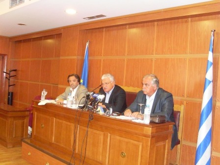 | Στη φωτογραφία οι Νομάρχες Λευκάδος, Αιτωλοακαρνανίας και Πρεβέζης στη συνέντευξη στο Μεσολόγγι |