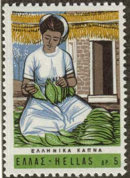εργάζεται στη διαλογή και επεξεργασία του καπνού.