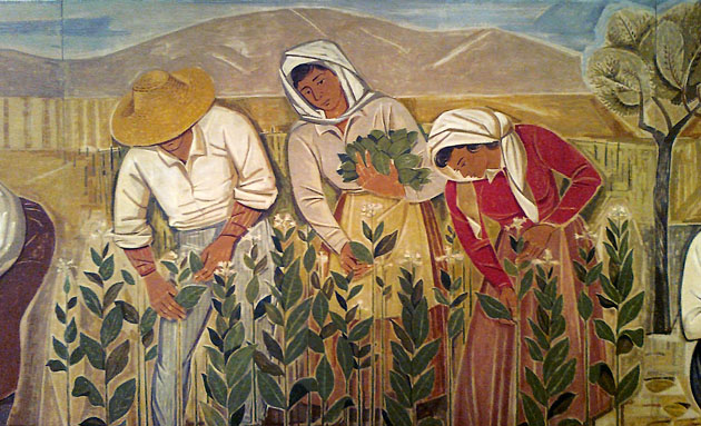 Λεπτομέρεια από τον περίφημο πίνακα του χαράκτη Τάσσου (1914-1985), «Η καλλιέργεια του καπνού»