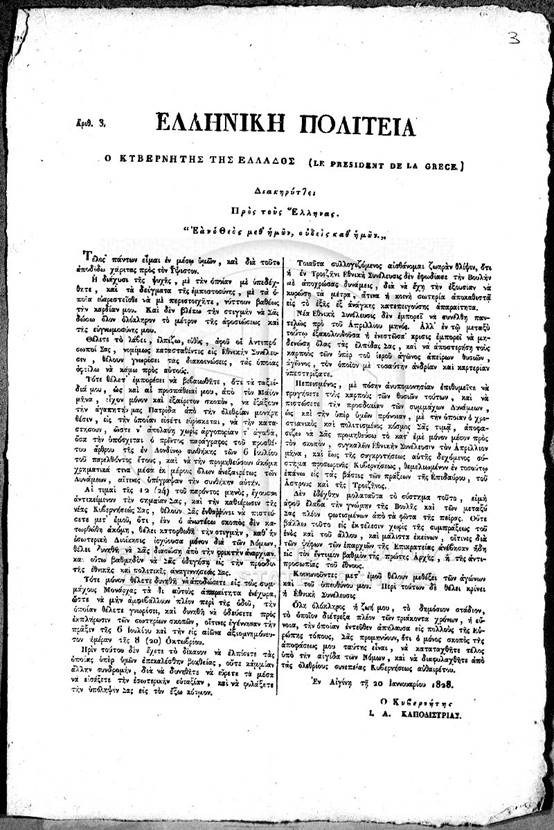 και τον τρόπο που θα κυβερνούσε (βλέπε Διάγγελμα). Η πτώση του Μεσολογγίου
