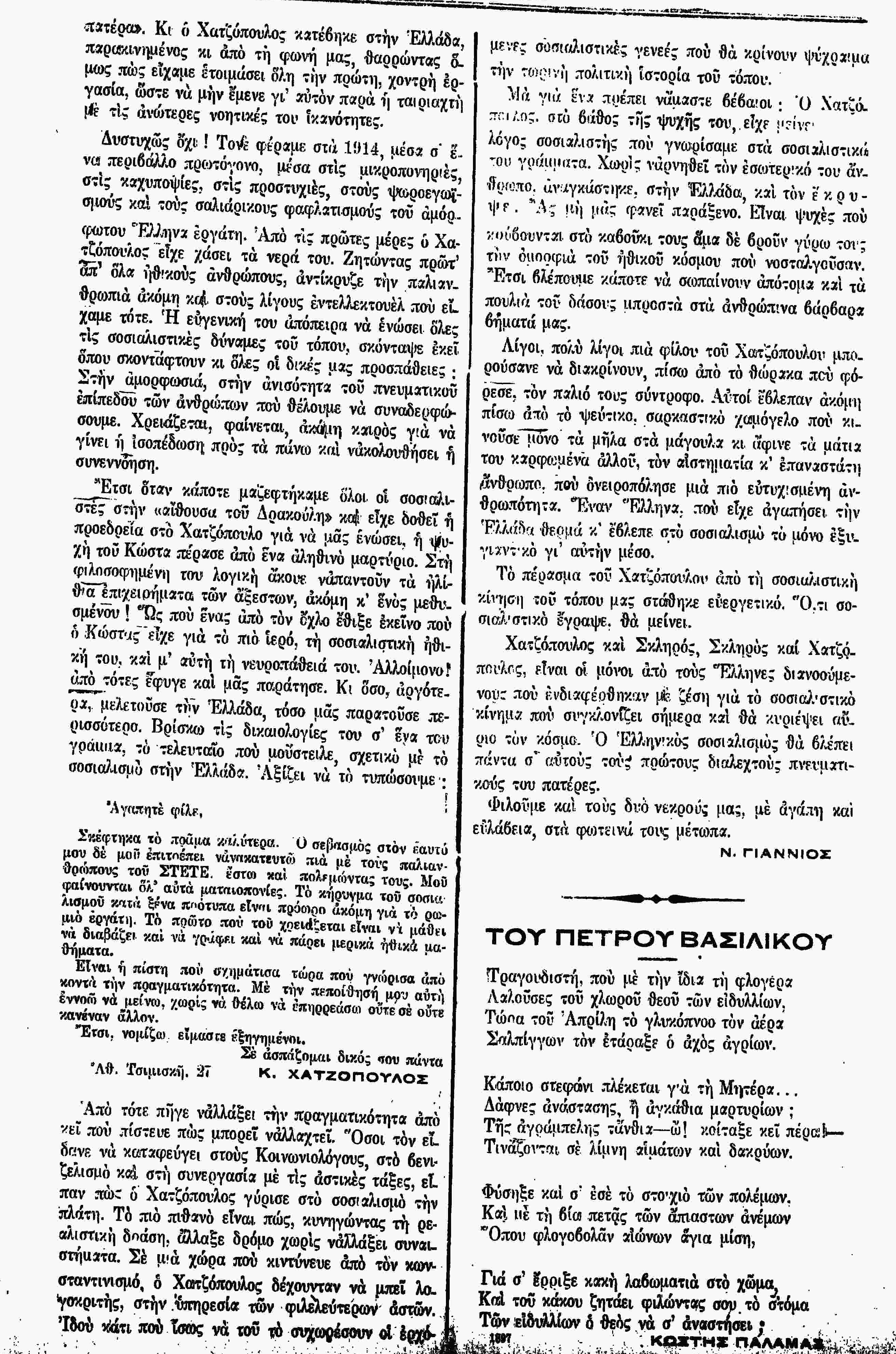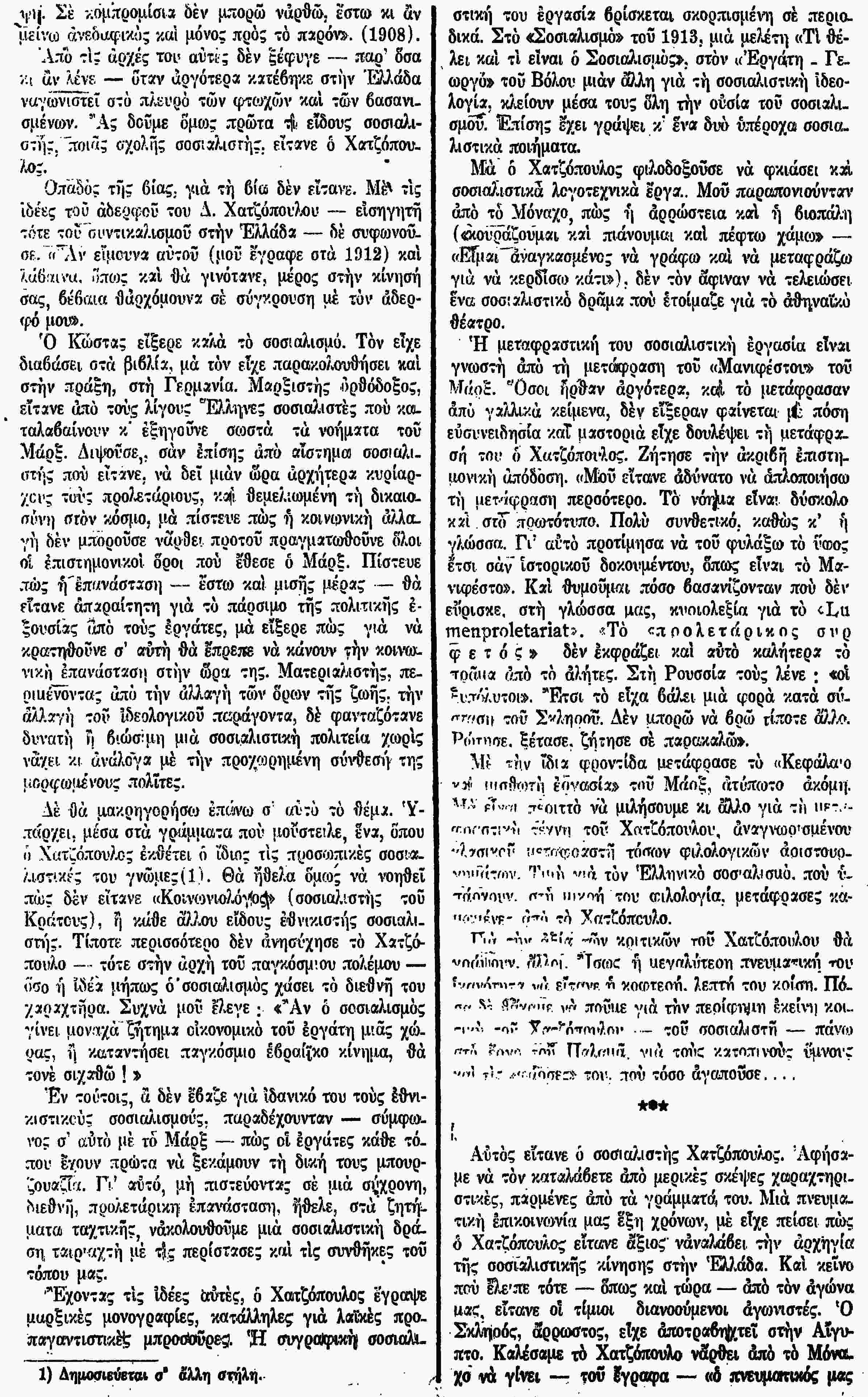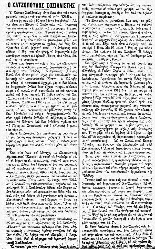 Ν. Γιαννιός: Ο Κ. ΧΑΤΖΟΠΟΥΛΟΣ ΣΟΣΙΑΛΙΣΤΗΣΈνα κείμενο δημοσιευμένο στο "Νουμά" το 1920 (μεταφορά τριών σελίδων από το πρωτότυπο)