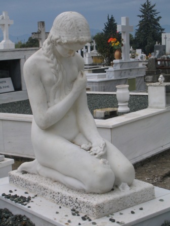Το Αγρίνιο δεν έχει να επιδείξει πολλά έργα τέχνης. Ένα από αυτά βρίσκεται στο νεκροταφείο του Αγρινίου και κοσμεί τον τάφο της οικογένειας Παπαβασιλείου. Είναι έργο του γνωστού γλύπτη Αντώνη Σώχου (1888 - 1975), φιλοτεχνημένο το 1925, με παραγγελία του Βασιλείου Παπαβασιλείου. Είχε εκτεθεί και είχε βραβευθεί σε Solon του Παρισιού, πριν μεταφερθεί στο Αγρίνιο. Παραθέτουμε (πιο κάτω) ένα απόσπασμα από την αξεπέραστη παρουσίαση του έργου που έκανε ο Κώστας Τριανταφυλλίδης (Ρίζα, Δεκέμβρης 1990)