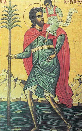 εικόνες του Αγίου Χριστοφόρου, εις τας οποίας ο Άγιος παρίσταται